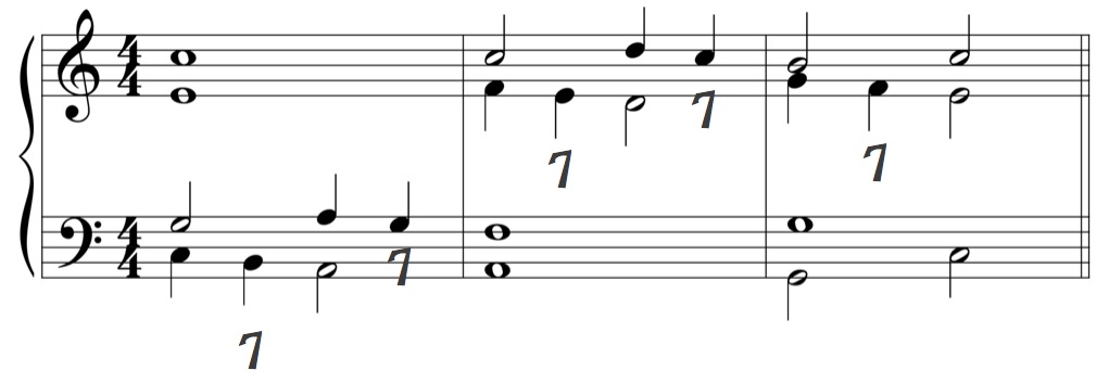 As sétimas como nota de paso se da con moita frecuencia nos baixos continuos descendentes do Barroco.