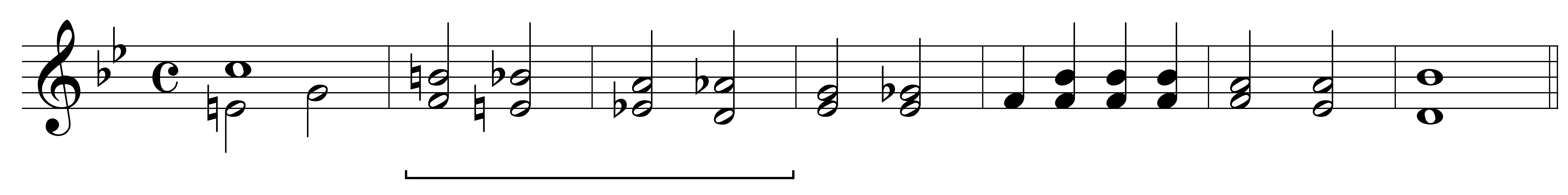 No seguinte exemplo atopamos un círculo de cuartas. Este tipo de progresión é menos habitual no período dos séculos XVIII e XIX, xa que os acordes que a integran forman enlaces de tipo plagal (IV-I), menos habituais no período da tonalidade.