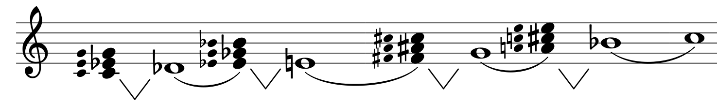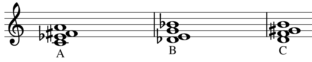 Pódense tamén definir como o resultado da superposicións de dous acordes de sétima diminuída.