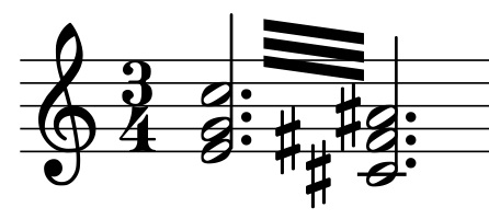 As notas nos acordes das campás de coroación da escena inicial da ópera Boris Godunov de Modest Mussorgsky , que consisten en "dous acordes de sétima de dominante con fundamental no tritón la♭-re"