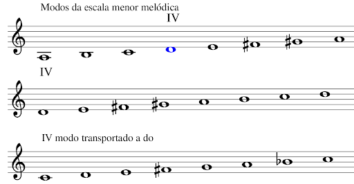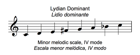 Correspóndese co cuarto modo da escala menor melódica. Isto quere dicir que é a escala que xorde comezando na 4ª nota desa escala.
